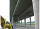 Das 19-feldrige Platten-Balken Tragwerk hat eine Gesamtlänge von ca. 1055 m und wurde 1987 erbaut. Das Flussfeld wurde als Stahltragwerk mit Betonplatte gefertigt. Die Felder davor und danach wurden aus Spannbeton mit integrierter Vorspannung erbaut. Die Prüfungen des Stahlüberbaues wurden durch das IB Koller durchgeführt. Die Untersuchung der Stahlbetonbauteile erfolgte durch das IB Schöppler Noack Neger. Die Befahrung wurde teils mit einem mobilen Brückenuntersichtgerät und einer 30 m Hubarbeitsbühne durchgeführt. Alle restlichen Bereiche, wie Fahrbahn, Kappendraufsichten, sowie die Innenflächen der Widerlager und Pfeiler waren zu Fuß, teils mit Hilfe von Steigen und/oder Leitern vollflächig zu erreichen. Sämtliche Betonflächen des Über- und Unterbaues wurden augenscheinlich untersucht und vollflächig abgeklopft. Alle übrigen Bauteile wie Übergangskonstruktionen, Schutzeinrichtungen, Belag, Ausstattungen, Lager und Gelände wurden ebenfalls umfassend auf deren Ausführung und Funktionalität nach den Richtlinien der DIN 1076 geprüft. |